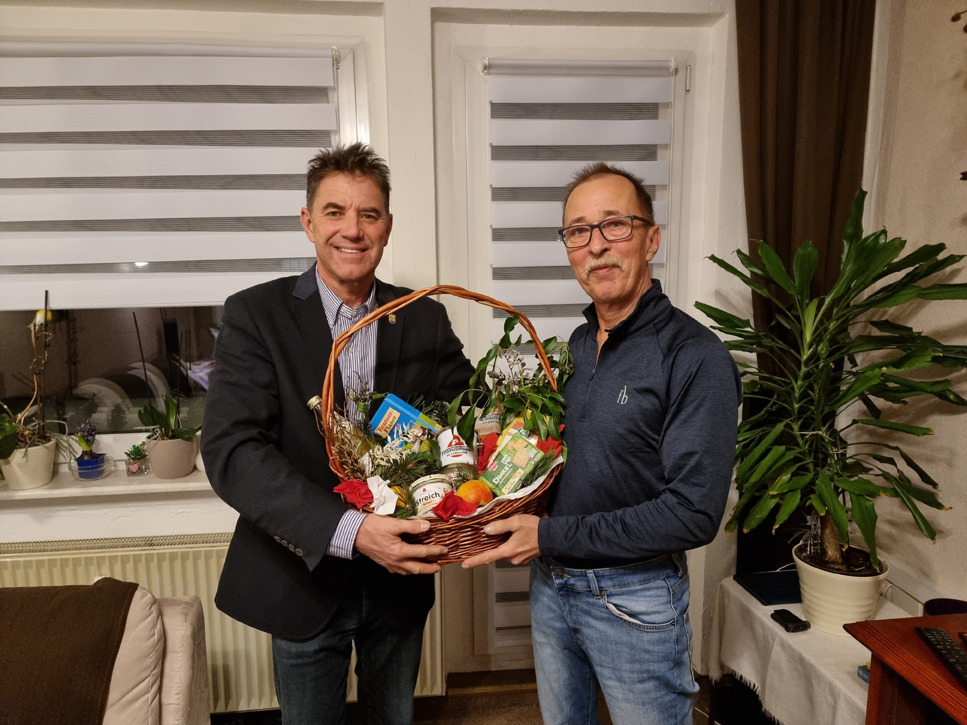 Für ihre ehrenamtliche Tätigkeit bei der Unterstützung der Arbeit des Ortsbeirates und unserer Vereine wurden auf dem Neujahrsempfang Detlev und Frank Huber mit einem Präsentkorb geehrt.